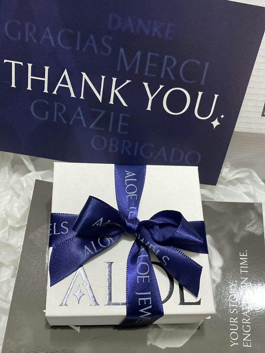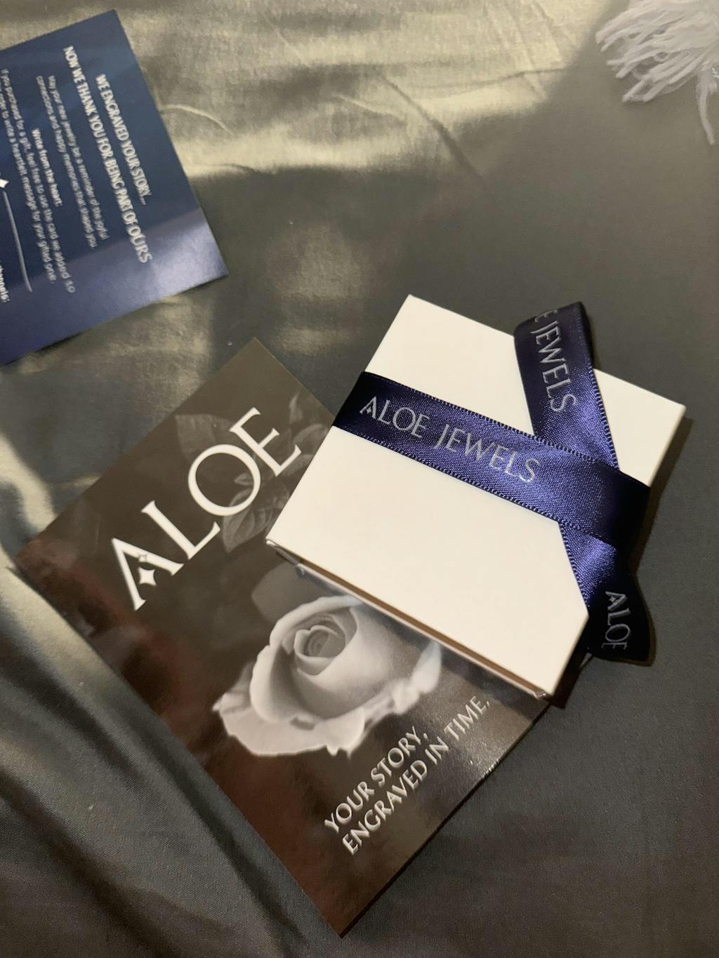 Todas as nossas peças vêm com uma caixa Aloe Jewels envolvida numa elegante fita de cetim, pronta para ser oferecida.